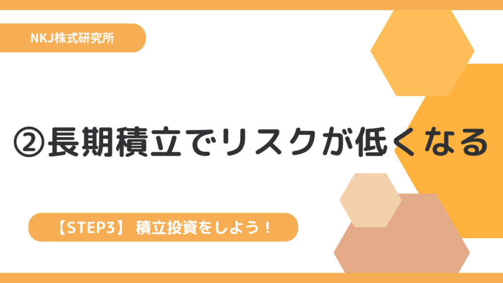 積立投資では、この3つ全てを満たすことができるため、リスクが低いとされています。
