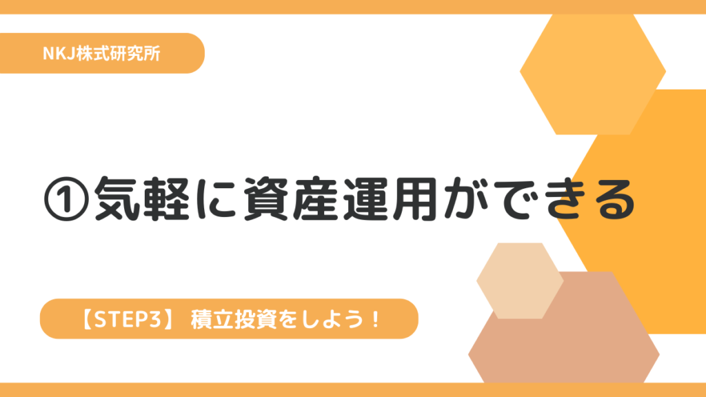 積立投資の1つ目のメリットは、気軽に資産運用ができることです。