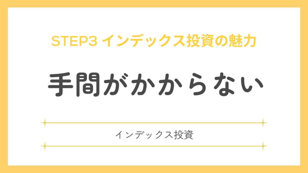 インデックス投資では、指数に投資をするので、個別株投資のように銘柄を選んだり、売り買いのタイミングを見計らったりする手間や時間が必要ありません。